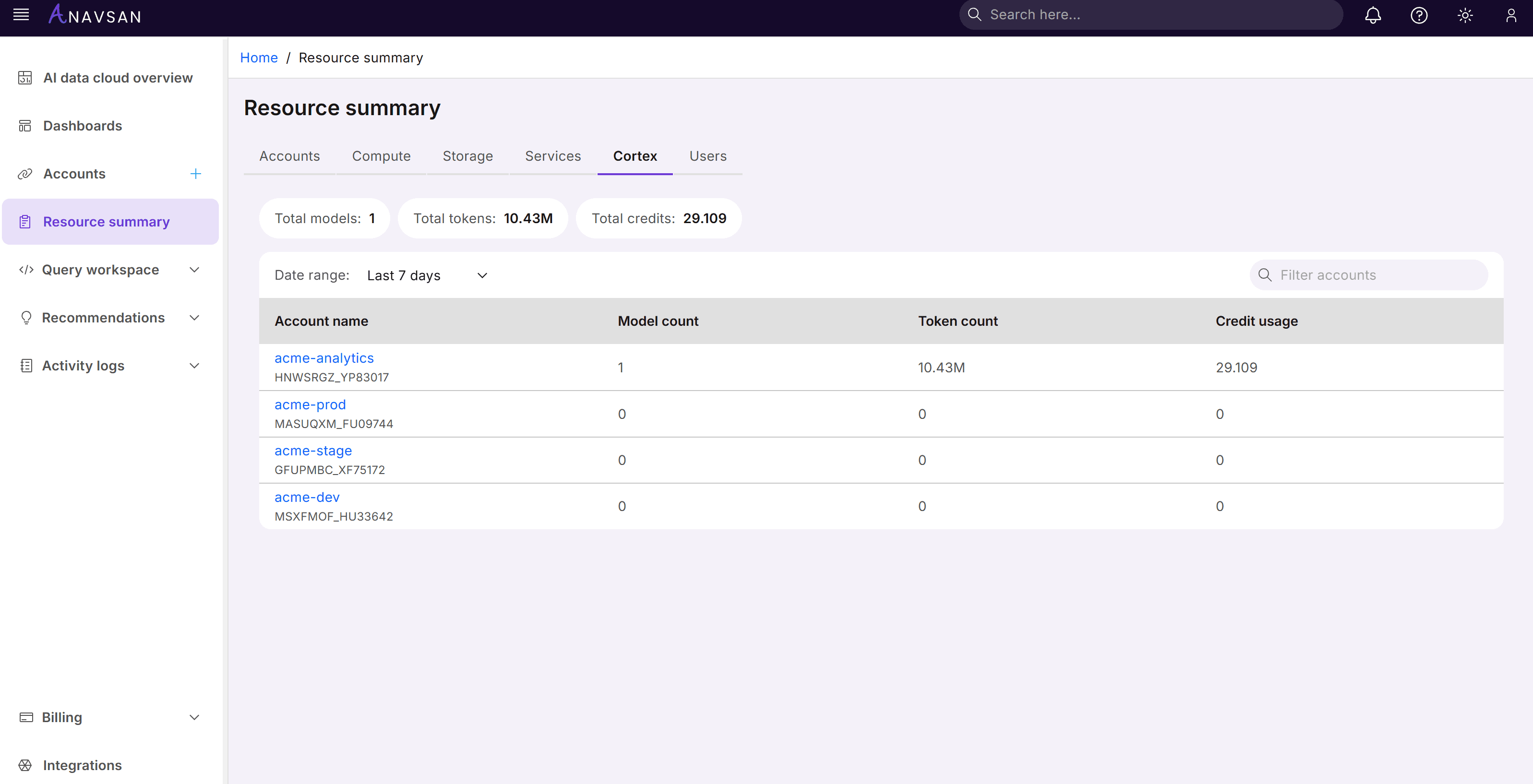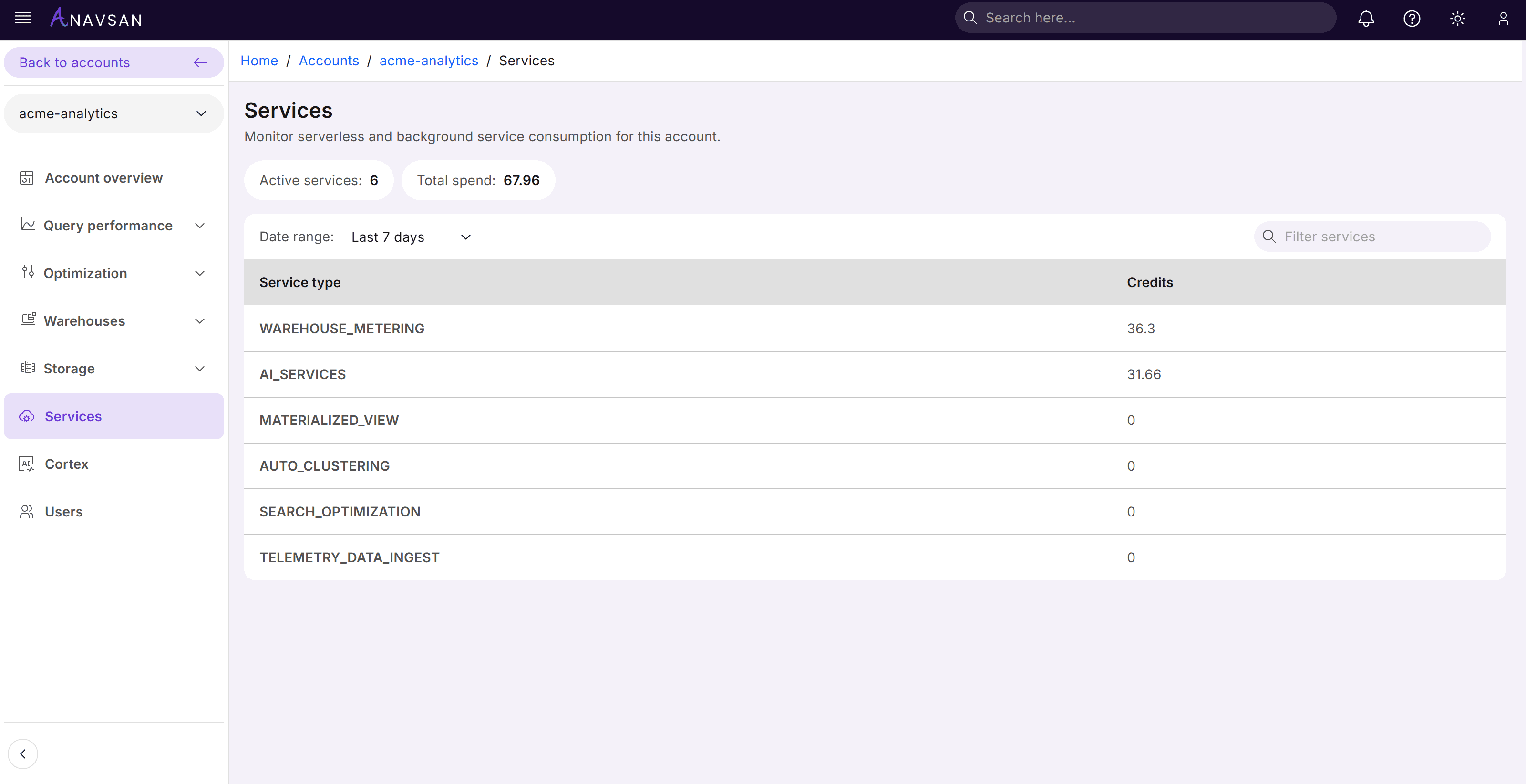 Snowflake Cortex unlocks AI-native capabilities inside Snowflake—but without visibility into services usage, cost, and workload behavior, optimization remains incomplete. Anavsan now provides unified Cortex and Services visibility in a single dashboard, enabling real-time AI workload monitoring, cost transparency, and performance intelligence across your Snowflake environment.