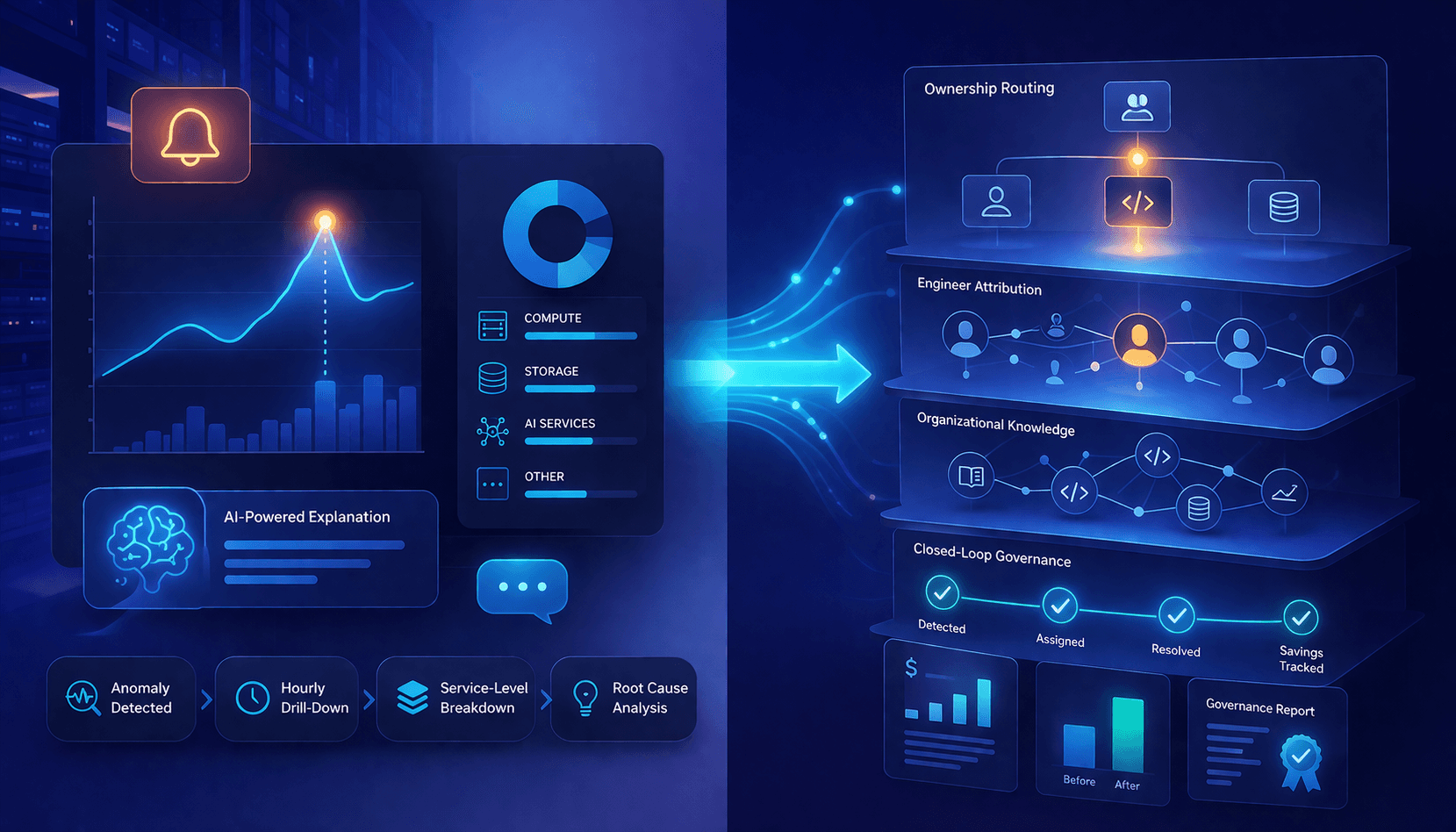 Board-ready FinOps reporting | ✘ | No resolved-item reporting or savings proof | ✔ | Governance dashboards with closed-loop proof for leadership |